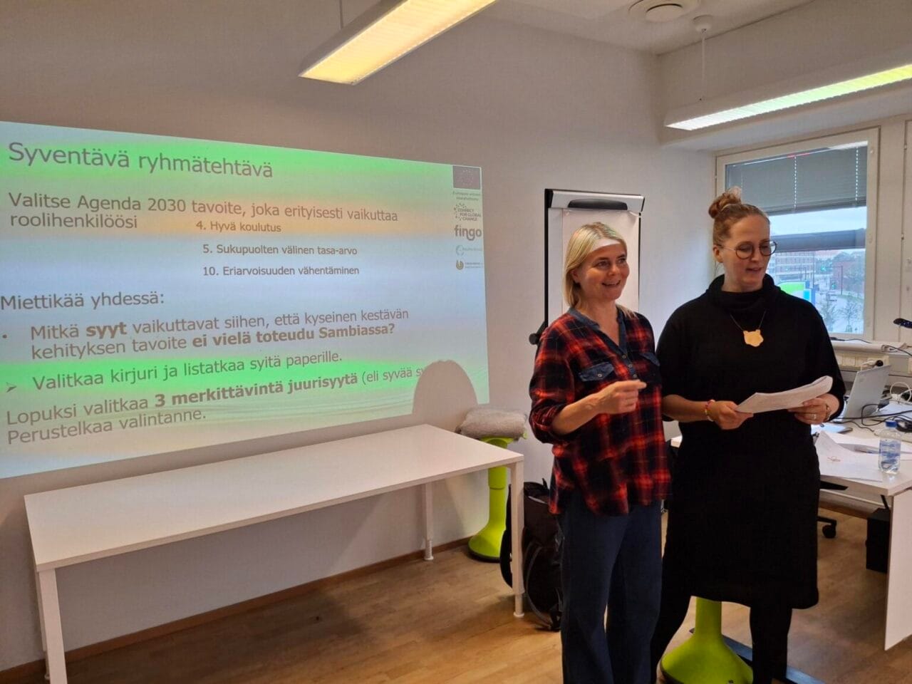 YK-liiton ja Nuorisovaltuustojen liiton yhteisessä AgendaLab – nuoret ja paikalliset kestävän kehityksen ratkaisut -projektissa tansanialaiset ja ugandalaiset nuoret jakavat esimerkkejä omista teoistaan kestävän kehityksen tavoitteiden edistämiseksi. Onnistumisten kautta innostetaan myös suomalaisia vahvistamaan tavoitteiden toimeenpanoa. FFD:n ja Maa- ja kotitalousnaisten projektissa keskiössä ovat globaalin etelän naispienviljelijät.