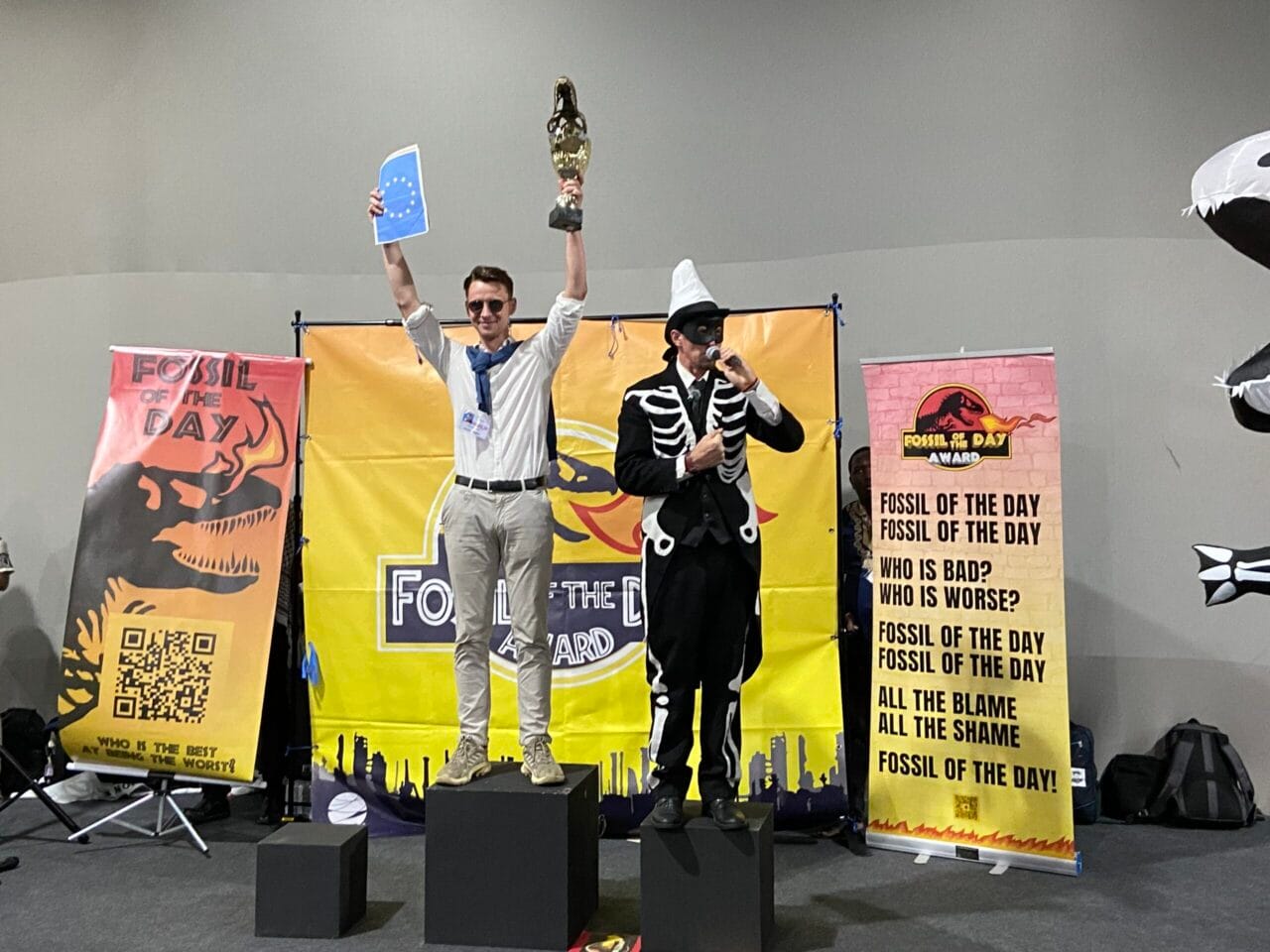 EU voitti pääpalkinnon ja julistettiin “päivän fossiiliksi” keskiviikko-iltana Belémin ilmastokokouksessa. Perusteluissa todetaan, että EU saa palkinnon, koska se aktiivisesti estää neuvotteluiden etenemistä, vaikka pitää mielellään itseään ilmastojohtajana. CAN-verkoston mukaan EU on liian usein keskittynyt pankkien ja yritysten etujen suojelemiseen aidon ilmastojohtajuuden kustannuksella.