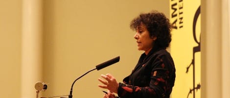 Amnestyn pääsihteeri Irene Khan luennoi Helsingin yliopistolla 9. joulukuuta.