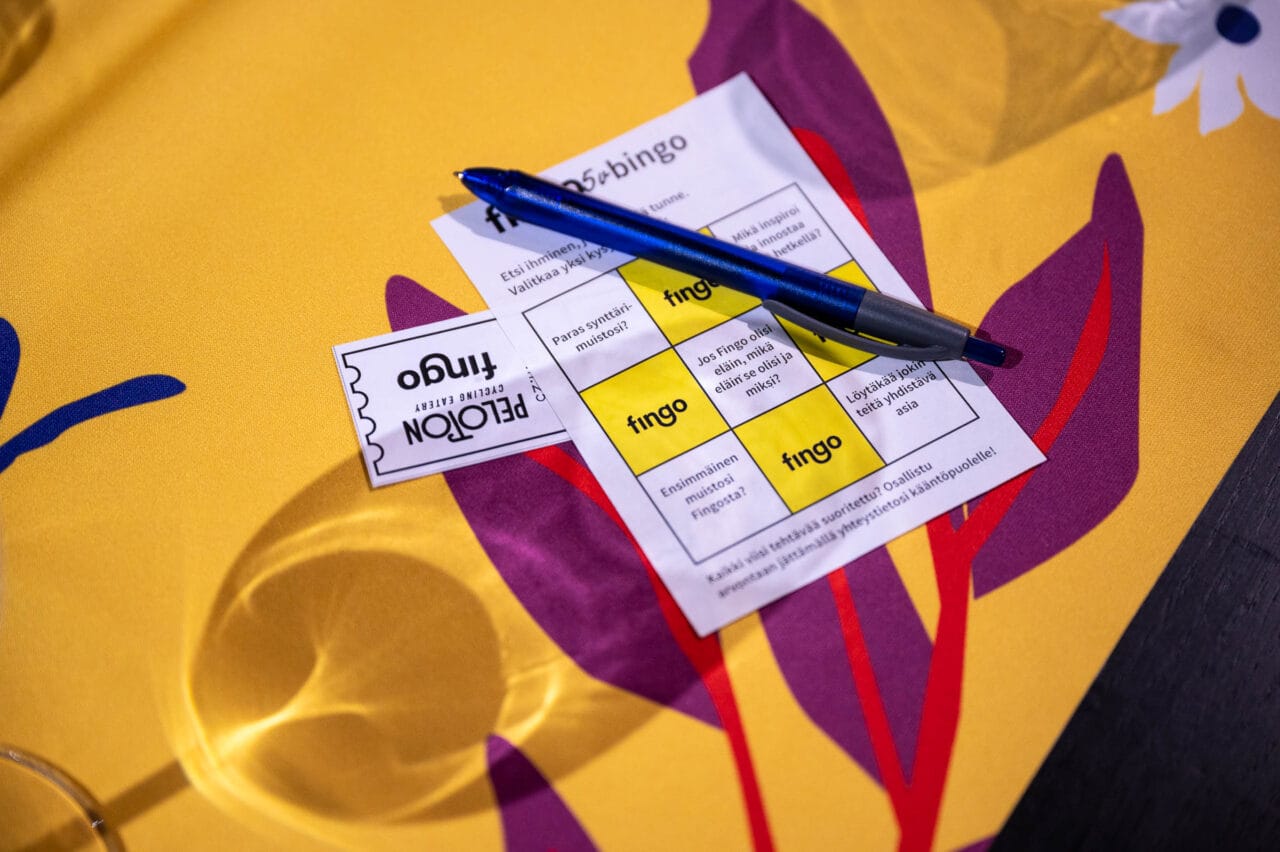 Juhlien aktiviteetteihin kuului myös tutustumisleikkinä toiminut Fingon 5-vuotisbingo.