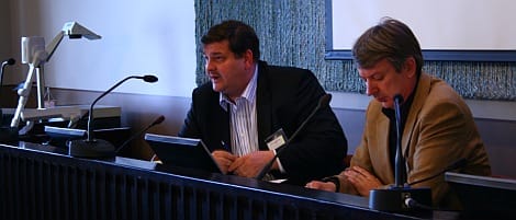 Kepan kevätkokouksessa keskusteltiin muun muassa uudesta ilmastolinjauksesta ja periaatejulistuksesta. Kuvassa Kepan toiminnanjohtaja Timo Lappalainen (vas.) ja puheenjohtajana toiminut Ari Parkkola Nakurun lapset ry:stä.
