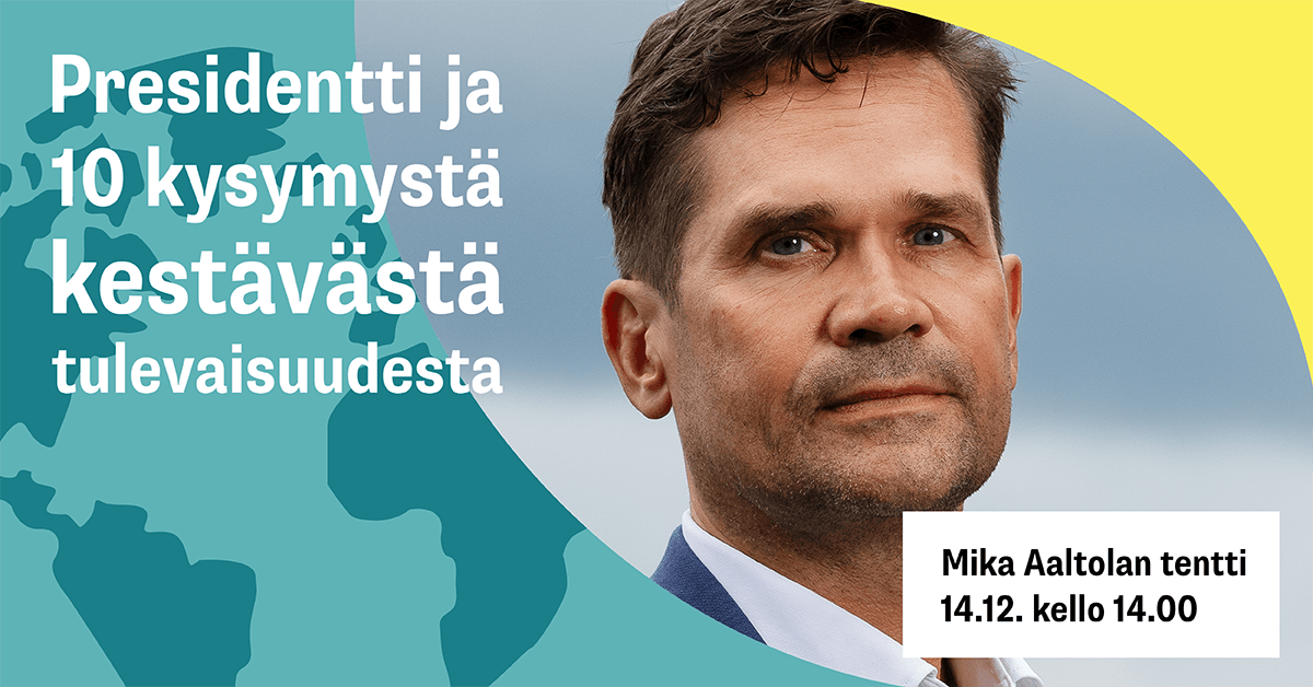 Nyt on aika esittää presidenttiehdokas Mika Aaltolalle kymmenen kysymystä kestävästä tulevaisuudesta. Miksi? Koska ulkopolitiikka on presidentin työn keskiössä. Arvojohtajana hänellä on myös erityinen rooli siinä, miten Suomi kantaa globaalia vastuuta ja asemoi itsensä kansainvälisesti.