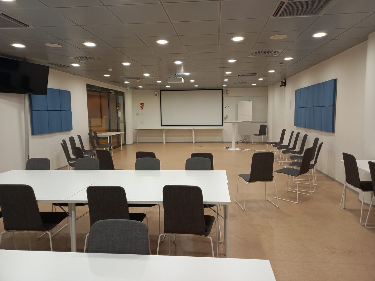 Koulutustiloihin johtava ovi on leveydeltään 100 cm ja siinä on korkeintaan 1 cm korkea kynnys.